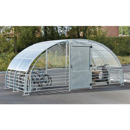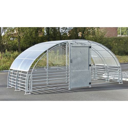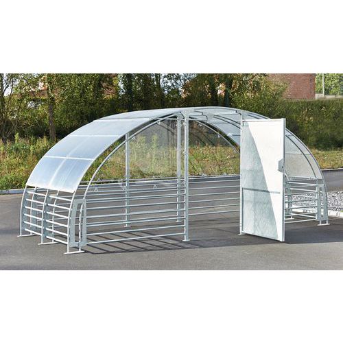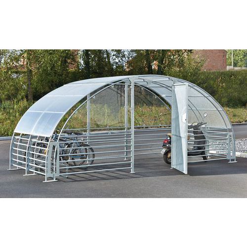 Abri polyvalent fermé, esthétique, de forme demi-lune.