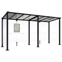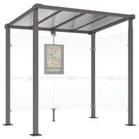 Design épuré pour un maximum de clarté. Très bonne résistance aux éléments. Abri à fixer au mur. Parois latérales transparentes.