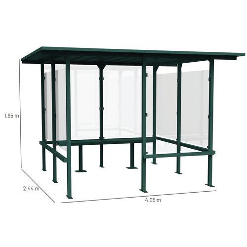 Abri fumeurs Beaufortain, Hauteur hors tout: 1.95 m, Largeur hors tout: 2.44 m, Longueur hors tout: 3.05 m Abri fumeurs Beaufortain, Hauteur hors tout: 1.95 m, Largeur hors tout: 2.44 m, Longueur hors tout: 3.05 m