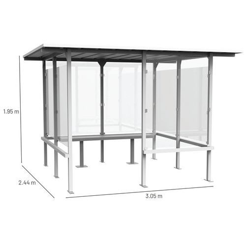 Abri fumeurs Beaufortain, Hauteur hors tout: 1.95 m, Largeur hors tout: 2.44 m, Longueur hors tout: 3.05 m Abri fumeurs Beaufortain, Hauteur hors tout: 1.95 m, Largeur hors tout: 2.44 m, Longueur hors tout: 3.05 m