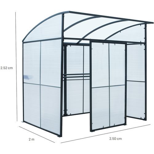 | Intitulé du produit | Abri fumeurs, Hauteur hors tout: 2.52 m, Largeur hors tout: 2 m, Longueur hors tout: 2.50 m |