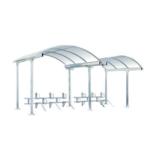 Les poteaux coulissants permettent aux modules situés en périphérie d'être utilisés comme auvent.