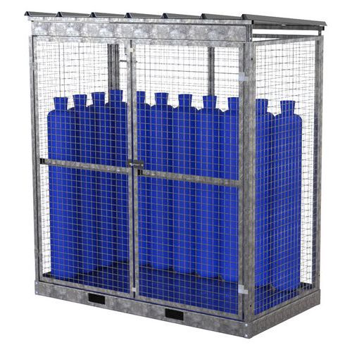 Abri pour stockage de bouteille gaz, Nb de bouteilles de gaz: 32, Nb de portes: 2, Largeur hors tout: 2070 mm