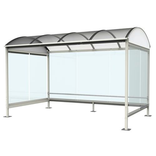 Grande modularité. Pieds réglables en hauteur. Visserie anticorrosion. Construction ossature en tube acier galvanisé. Poteaux de 60 x 60 mm. Traverses et rives acier plié. Lisse de protection tube acier diamètre 40 mm en fond d’abri. Couverture polycarbonate alvéolaire traité UV 2 faces, pincé entre arceaux profil aluminium. Finition peinture polyester thermodurcissable cuite à 200°C, insensible aux UV. Habillage verre trempé «sécurit» clair, épaisseur 8 mm. Joint poli industriel. Fixation par vis poêlier, canon nylauto. Fixation non fournie : Utiliser vis d’ancrage M12/65 sur dalle béton ou plots béton. Utiliser tiges filetées M12/120 sur enrobé propre et plan. L'enrobé doit avoir une épaisseur minimum de 7 cm. Autres RAL disponibles sur demande, pour personnalisation.