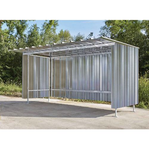 | Intitulé du produit | Abri vélos tôle, Longueur hors tout: 4.8 m, Profondeur hors tout: 2.26 m, Nb de places: 10 |