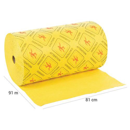 Absorbant avec message d'avertissement pour une double sécurité. Permet à la fois de camoufler ou d'essuyer les liquides et prévenir des risques de glissade. Son coloris haute visibilité et son pictogramme de sécurité poussent à la vigilance. Grande capacité d'absorption de liquides industriels non chimiques. Idéal pour les zones à fort trafic où les risques de glissades, trébuchements et chutes sont présents