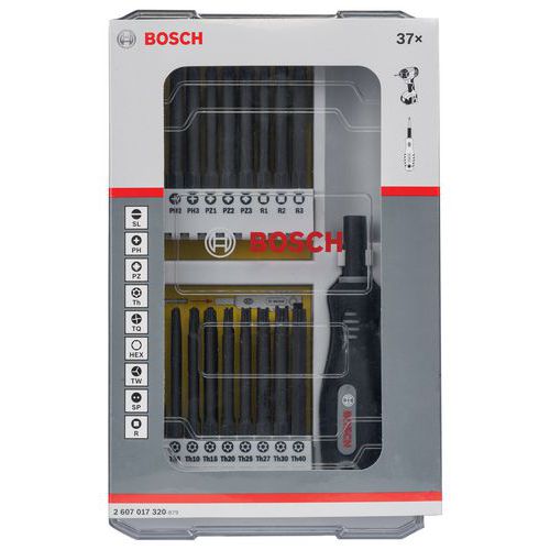 | Intitulé du produit | Accessoire vissage de 37 pièces, Nb de pièces: 37, Réf. Fabricant: 2607017320, Modèle: Tri-Wing TW 1/2/3/4 |