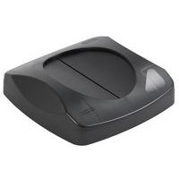 Couvercle rectangulaire à charnières pour poubelle DURABIN® 60. Avec deux ouvertures rondes pour les boîtes de conserve et les bouteilles. Les fixations à clip s'enclenchent dans le bord supérieur du conteneur. Manipulation facile grâce à l'angle d'ouverture réglable du couvercle.