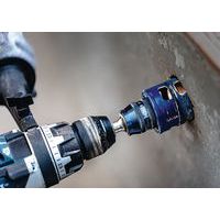Idéal pour changer rapidement et efficacement les scies trépans, par exemple lors de la découpe de trous de différents diamètres lors de l'aménagement d'une salle de bain , il peut également être utilisé sans scie trépan, sans retirer le système, pour percer des avant-trous.
