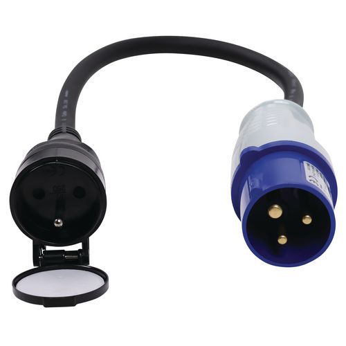 | Intitulé du produit | Adaptateur prise industrielle/ prise domestique NF, Intensité: 16 A, Tension: 250 V, Nb de prises: 2 |
