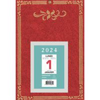 - 12 feuillets mensuels détachables, avec l'indication des vacances scolaires, les dimanches et les jours fériés sont imprimés en rouge pour les repérer facilement, de la place pour écrire sur chaque jour.