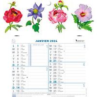 - Calendrier mensuel Fleurs avec feuillets détachables agrafé sur plaque cartonnée imprimée 2024 Un décor floral façon aquarelle.