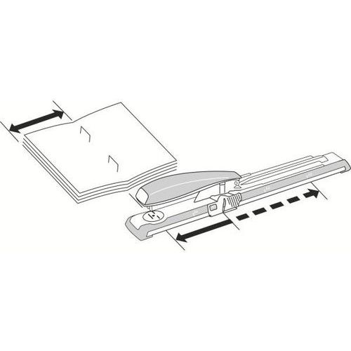 | Intitulé du produit | Agrafeuse long bras en boîte, Capacité d'agrafage (nb de feuilles): 40, Longueurs: 419 mm, Largeur: 52 mm |