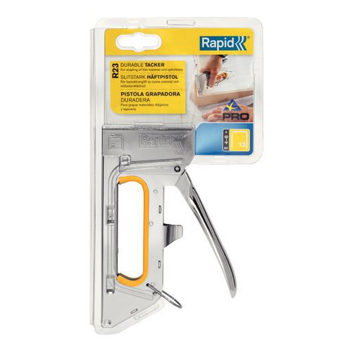| Intitulé du produit | Agrafeuse manuelle R23E, Capacité d'agrafage (nb de feuilles): 2, Longueur: 279 mm, Largeur: 27 mm |
