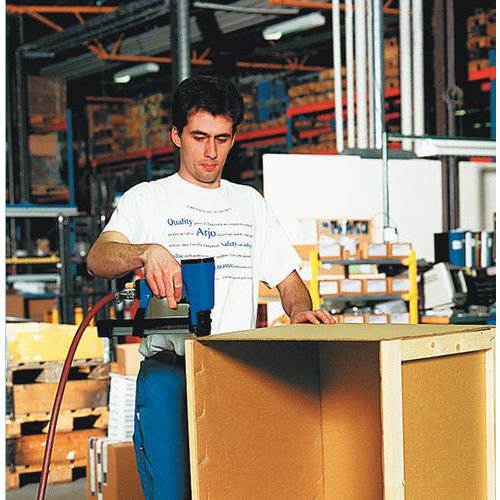 | Intitulé du produit | Agrafeuse pneumatique, Pour agrafe largeur: 24.4 mm, Chargeur capacité (nb d'agrafes): 100, Longueurs: 335 mm |