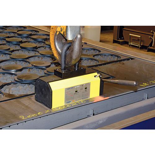 Le porteur est actionné par un levier d'armement ergonomique et robuste. Une sécurité verrouille le levier afin d'éviter que l'aimant ne se détache. Chaque aimant est doté d'un anneau de fixation pour le crochet de l'outil de levage.