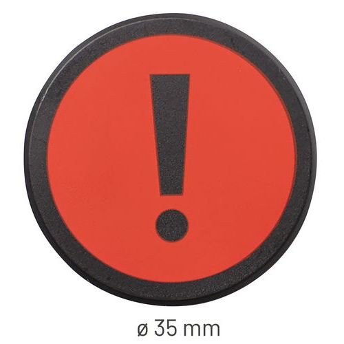 Aimant rond avec symbole Point d'exclamation, Type: Point d'exclamation, Coloris: Rouge, Ø: 35 mm Aimant rond avec symbole Point d'exclamation, Type: Point d'exclamation, Coloris: Rouge, Ø: 35 mm