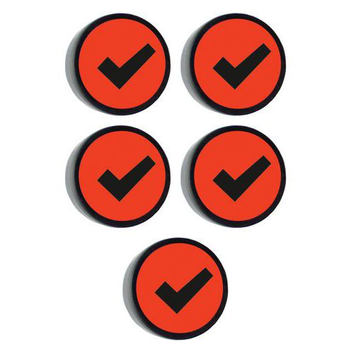 Plot magnétique rond pour afficher ou fixer des documents sur des surfaces métalliques. Coloré avec symbole vérifié apportera une petite touche de gaiété à vos affichages. Optez pour une communication visuelle