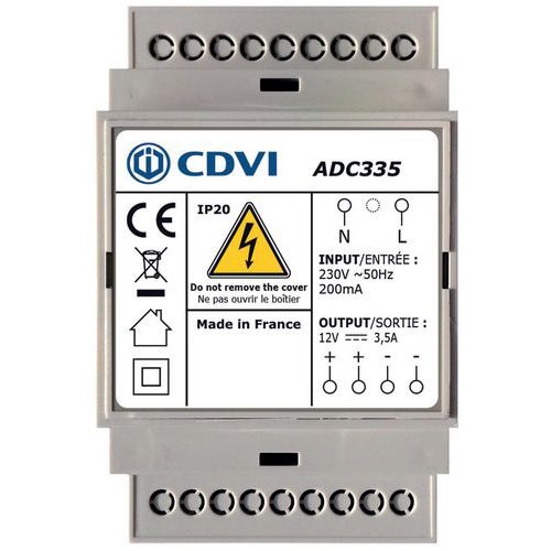 | Intitulé du produit | Alimentation Découpage 12 V 3.5 Amp 3 Modules, Hauteur: 110 mm, Largeur: 91 mm, Épaisseur: 58 mm |