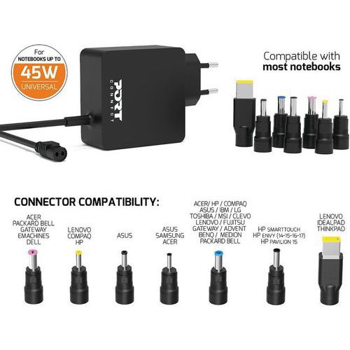 Alimentation secteur universelle 45W, Chargeur utilisation: PC portable, Puissance: 45 W