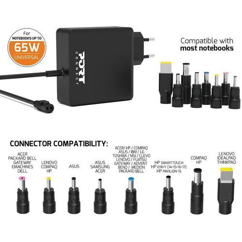 Alimentation secteur universelle 65W, Chargeur utilisation: PC portable, Puissance: 65 W