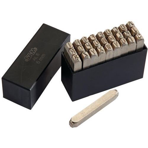 Alphabet à frapper, Caractère hauteur: 6 mm, Poinçon Ø: 10 mm, Poinçon longueur: 75 mm, Réf. Fabricant: AL-6