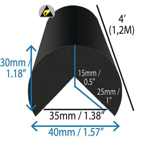 Amortisseur de choc arrondi, Épaisseur: 15 cm, Matériau: Mousse, Longueur: 1200 cm, Largeur: 40 mm Amortisseur de choc arrondi, Épaisseur: 15 cm, Matériau: Mousse, Longueur: 1200 cm, Largeur: 40 mm