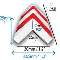 Amortisseur de choc carré - Rouge/Blanc. Destiné à éviter les blessures corporelles et les dommages matériels dans un environnement de travail dynamique. Prêt à utiliser grâce à sa fixation par adhésif.
