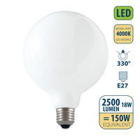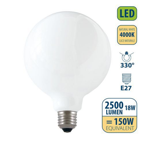 Ampoule à filament LED opale 18W globe G125 E27, Flux lumineux: 2500 lm, Type de culot: E27