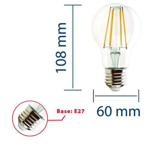 Ampoule à filament LED standard A60 8W culot E27, Flux lumineux: 1055 lm, Type de culot: E27