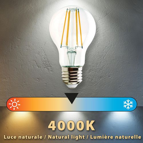 Avec une température de couleur de 4000 Kelvin, l'ampoule fournit une lumière blanche naturelle, créant une atmosphère lumineuse dans n'importe quelle pièce. Parfaite pour toutes les pièces de la maison telles que chambre, salon, salle de bain ... et pour le bureau.