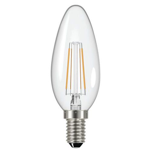 | Intitulé du produit | Ampoule Led à filaments E14 4W, Flux lumineux: 450 lm, Type de culot: E14, Technologie: LED, Forme: Flamme |
