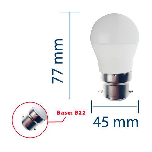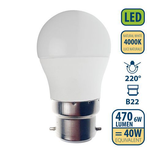 Ampoule Led Smd mini-Sphérique P45 6W culot B22, Flux lumineux: 470 lm, Type de culot: B22