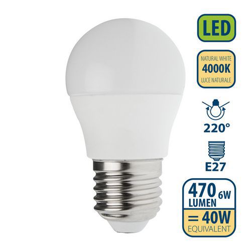 Ampoule Led Smd mini-Sphérique P45 6W culot E27, Flux lumineux: 470 lm, Type de culot: E27