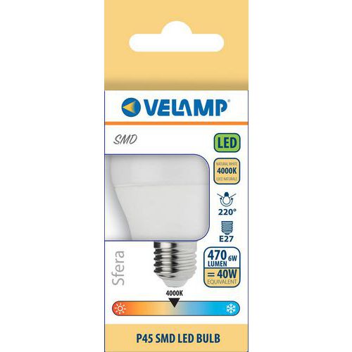 Ampoule Led Smd mini-Sphérique P45 6W culot E27 - VELAMP