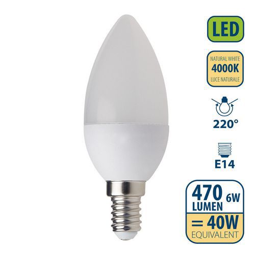 Ampoule Led Smd olive C37 6W culot culot E14, Flux lumineux: 470 lm, Type de culot: E14
