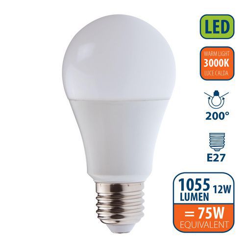 Ampoule Led Smd standard A60 12W culot E27, Flux lumineux: 1055 lm, Type de culot: E27