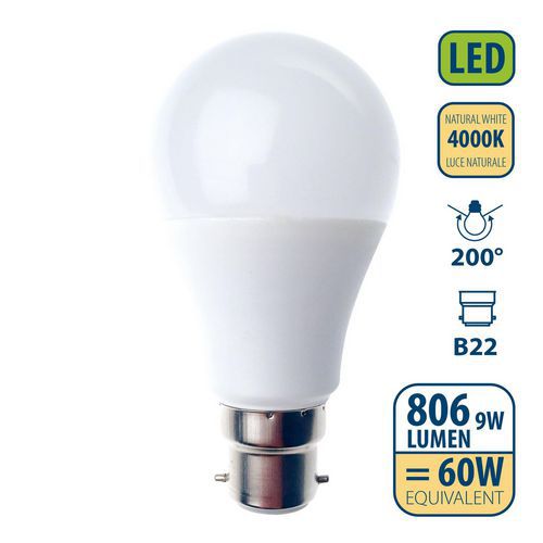 Ampoule Led Smd standard A60 9W culot B22, Flux lumineux: 806 lm, Type de culot: B22