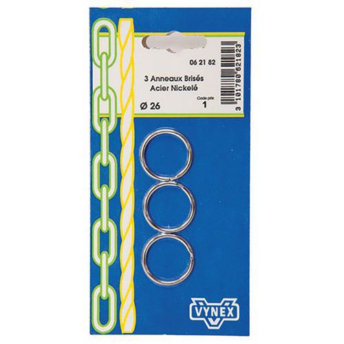 | Intitulé du produit | Anneau Brise Nickele D.26Mm Bl3 Cp:1, Matériau: Acier, Nb de pièces: 3, Ø extérieur: 26 mm |