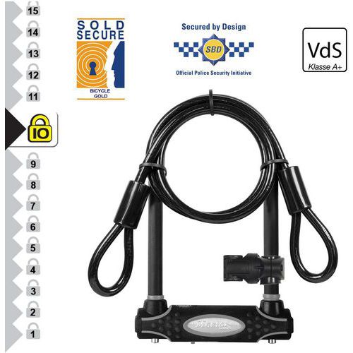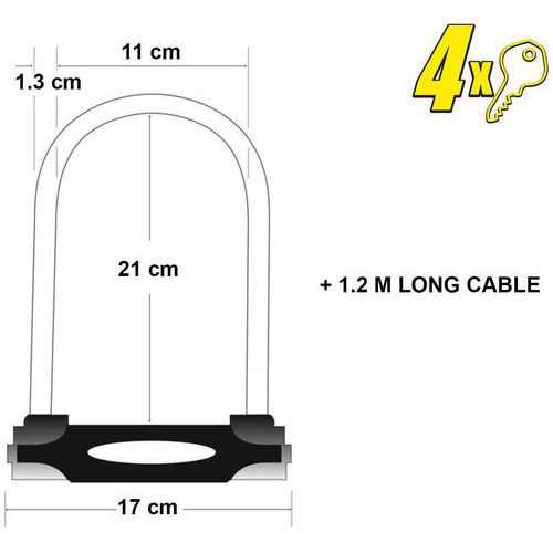 | Intitulé du produit | Antivol en U avec câble à clé 8274EUR, Ø: 165 mm, Longueur: 265 mm, Nb de clés: 4, Poids du produit: 1.586 kg |