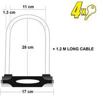 Intitulé du produit | Antivol en U avec câble XL 8285EUR, Ø: 13 mm, Longueur: 335 mm, Nb de clés: 4, Poids du produit: 1.67 kg |