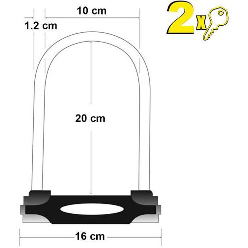 | Intitulé du produit | Antivol en U, Ø: 12 mm, Longueur: 240 mm, Nb de clés: 2, Poids du produit: 0.507 kg |