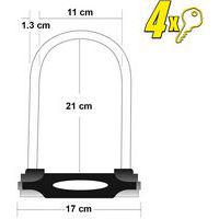 Antivol U doube verrouillage à clé et en acier 8195EUR, Ø: 13 mm, Longueur: 265 mm, Nb de clés: 4