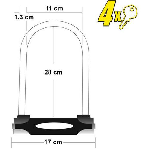 Antivol U doube verrouillage à clé et en acier 8195EUR, Diamètre Ø: 13 mm, Longueurs: 335 mm, Nb de clés: 4