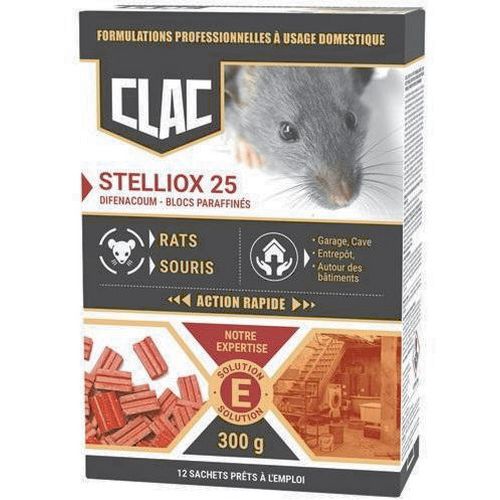 | Intitulé du produit | Appât bloc rats et souris action rapide Stelliox 25g, Type de produit anti-nuisibles: Appât |