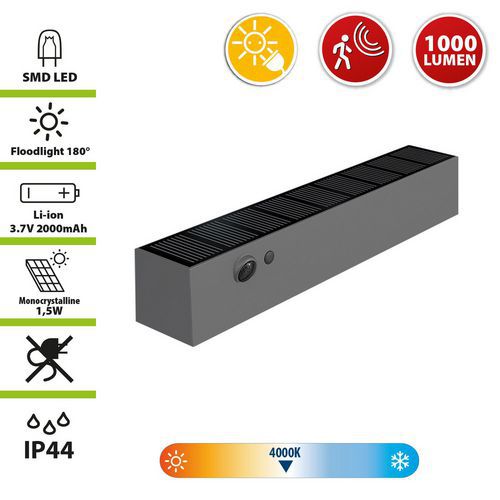 | Intitulé du produit | Applique murale LED solaire avec détecteur de présence Malick, Flux lumineux: 1000 lm |