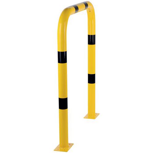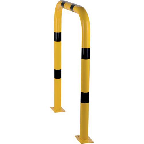Arceau de protection en acier robuste servant à protéger les équipements ou les machines des coups éventuels portés par les engins de manutention. Bonne visibilité grâce à son coloris bi-colore jaune/noir. Convient aussi bien pour une utilisation intérieur qu'extérieur. Matériel de fixation non inclus. Certificat du TÜV.