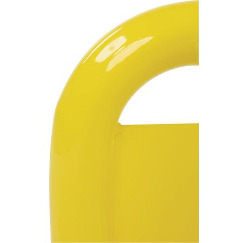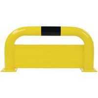 Arceau de protection avec plaque additionnelle pour prévenir des chocs dus aux fourches des engins. Plaque anti-encastrement de construction robuste. Revêtement noir/jaune pour signaler le danger de façon visible. Fixation via platine à sceller.