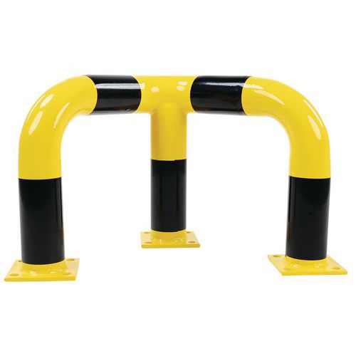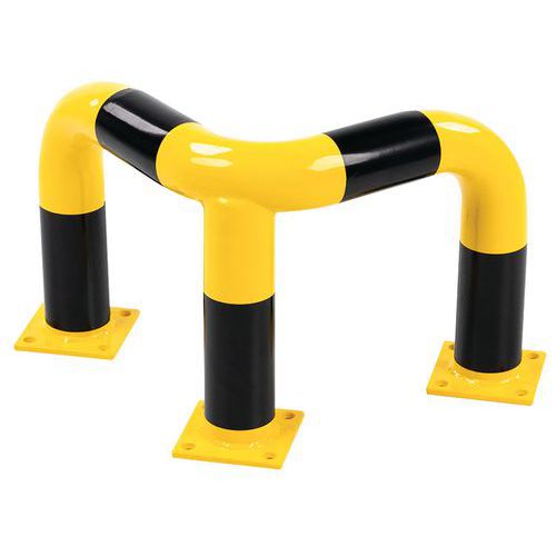 Arceau de protection de construction robuste pour la sécurisation de vos angles. Revêtement noir/jaune pour signaler le danger de façon visible. Fixation via platine à sceller.
