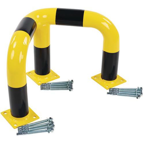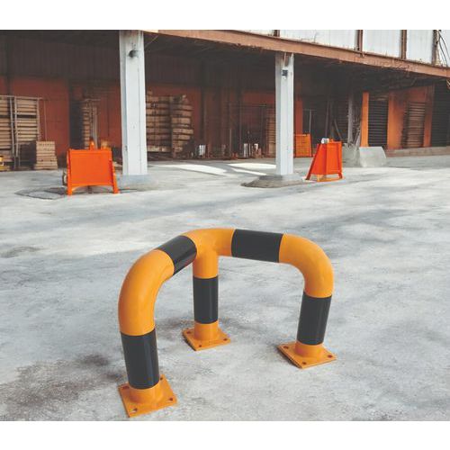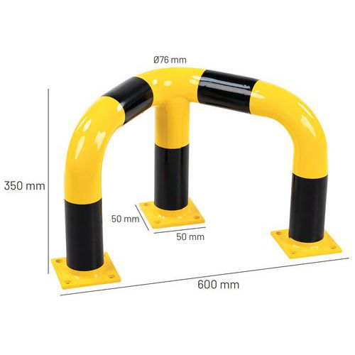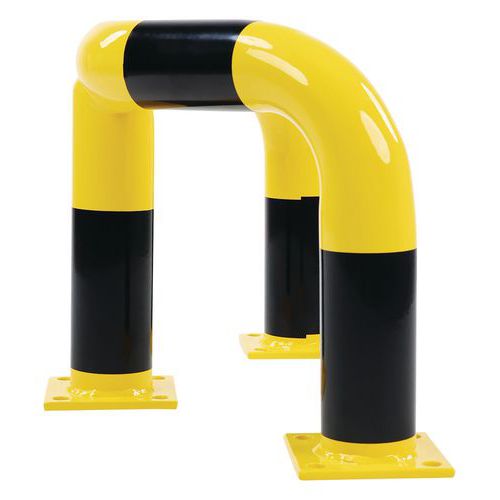 Arceau de protection de construction robuste pour la sécurisation de vos angles. Revêtement noir/jaune pour signaler le danger de façon visible. Fixation via platine à sceller. Garantie client : 10 ans